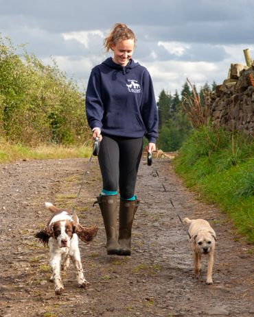 At Doggies in the Dales, I aim to provide the best dog walking services for your dog. Your furry friends deserve the utmost care and attention while enjoying the great outdoors. Not only do we have a network of footpaths running through our 300 acre farm but we also have secure fenced fields where your dogs can run free. I believe in quality rather than quantity so never walk more than 2 clients dogs at once. If you want your pups to socialise I am happy to bring our two dogs to join in the fun!